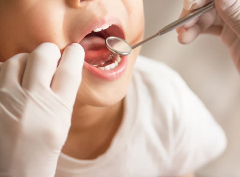 歯科医院で行われる乳歯から永久歯への生え変わり状況の確認では、乳歯の抜け方や永久歯の生え始めのタイミング、歯の位置をチェックします。